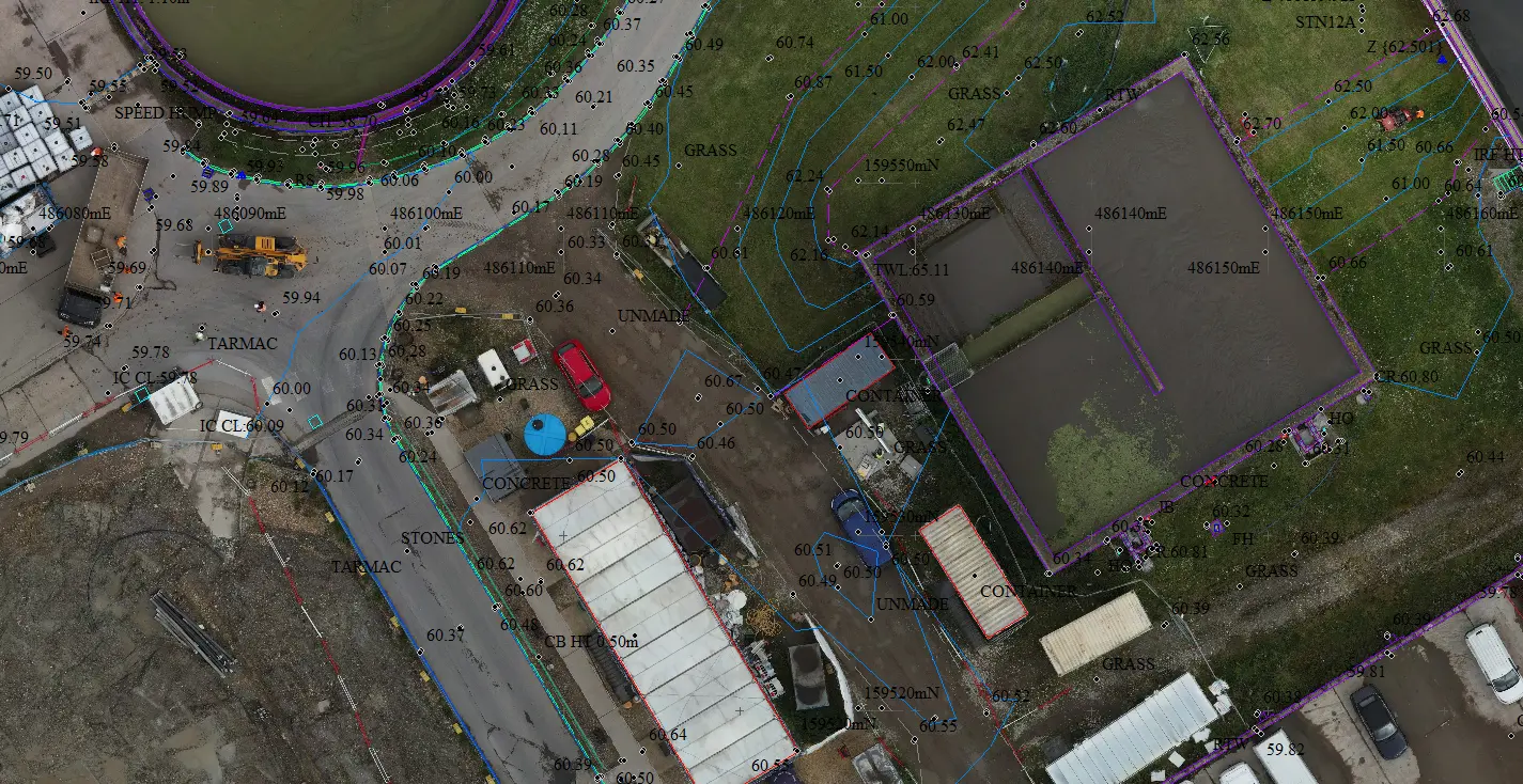 Using a 2D orthomosaic from a drone survey is a great way to bring line work from a topographical or utility CAD drawing to life as it gives great insights and perspective plus provides context.