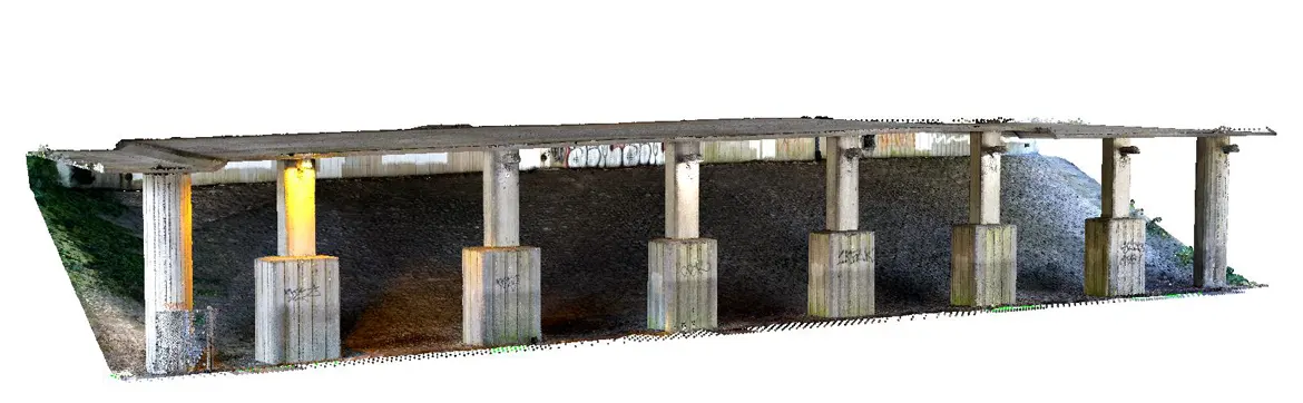 We successfully produced survey grade accurate 2D and 3D digital data of the undersides and columns or pillars of the viaducts. The data was tied into the OS grid so it could be linked with other survey data like a topographical survey. It was also used to verify the <1cm of global accuracies.